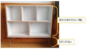 今回は、市販の「棚」を、床から浮かせる「台」を作りました。